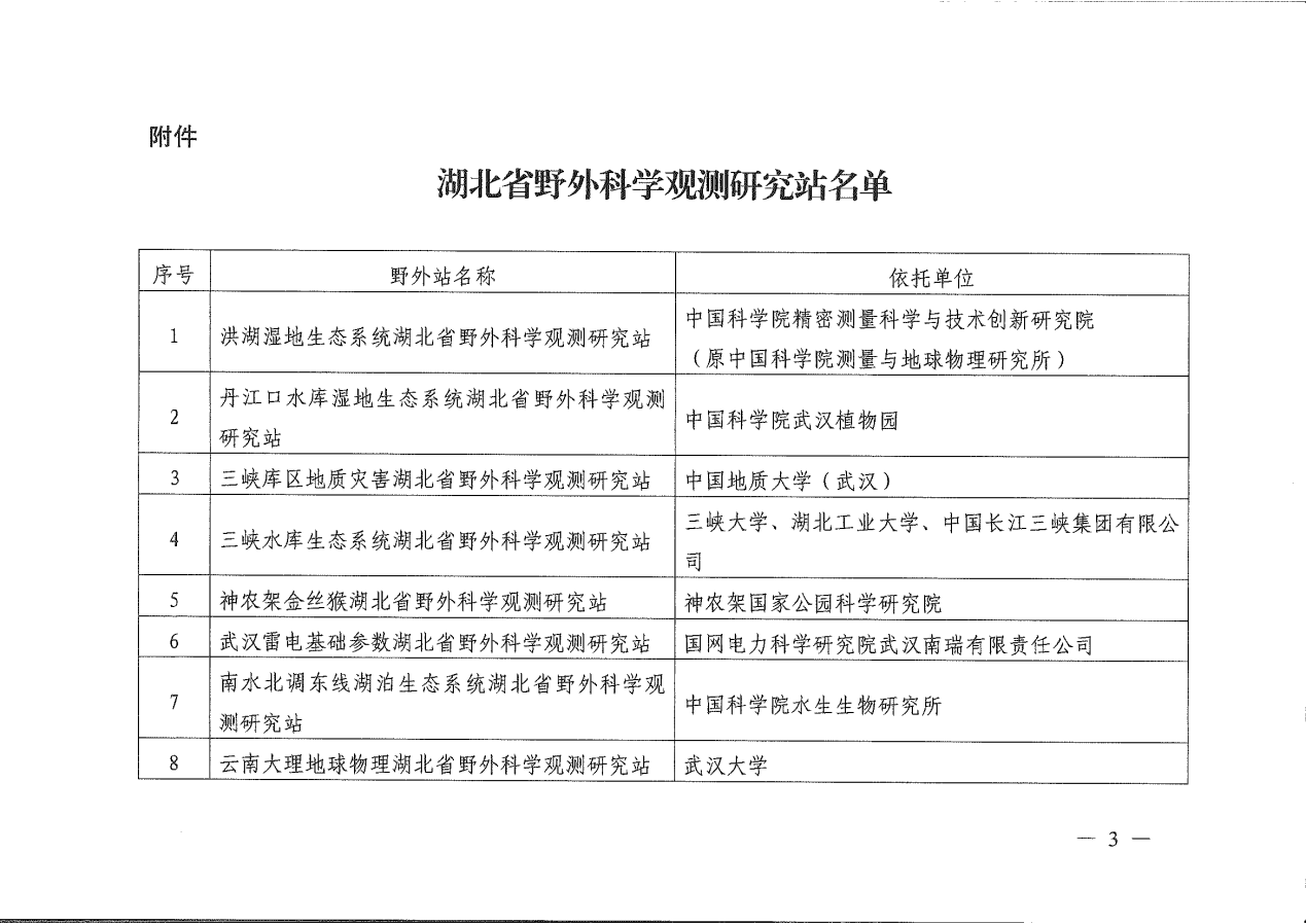 近日,湖北省科技廳公布了《省科技廳關于公布湖北省野外科學觀測研究站的通知》(鄂科技發基[2019]11號),由我校聯合湖北工業大學大學、中國長江三峽集團有限公司申報的“三峽水庫生態系統湖北省野外科學觀測研究站(以下簡稱“三峽生態站”)”獲批立項建設,我校是此次入圍的8家依托單位中的唯一省屬高校。